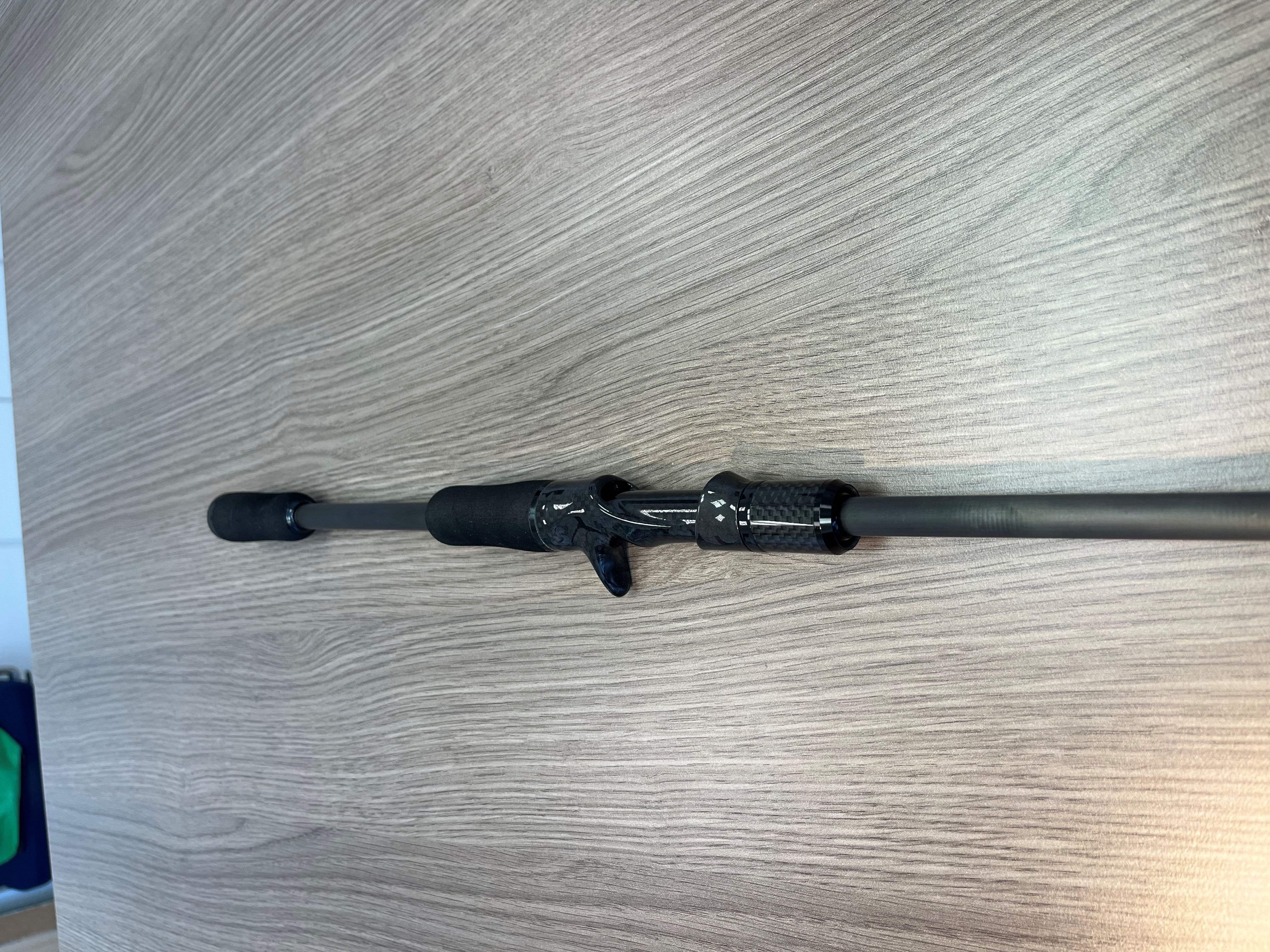 Verbaut wurde ein neuer Carbon Rollenhalter von SeaGuide, Duplongriffe wurden zurecht geschliffen und die Beringung erfolgte mit einem Simple Wrap mit den Fuji Sic Sim Shinny Grey von KW 8 über 6er KB und weiter mit 2 KB´s 5,5 und 5, Rest 5er KT. Gewickelt wurde Fuji Black Metallic mit Grey Metallic kombiniert. Unter Sonnenlicht gibt das Black einen leichten violetten Touch ab, sieht wunderbar aus, aber auch sehr dezent, wie gewünscht. Ist leider mit dem Handy nicht gut zu fotografieren.
