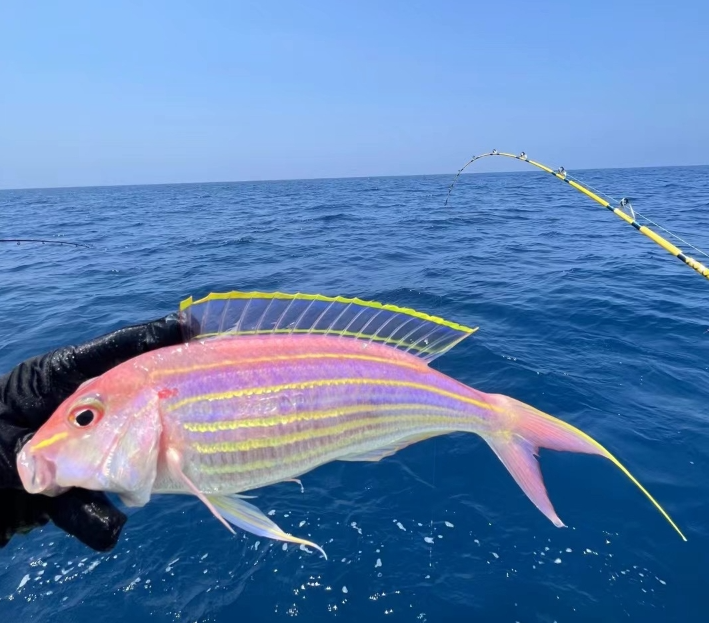 Bei erster Methode fängt man Ufernah vom Boot aus alles mögliche an Barschen, aber meist kleiner, weiter draußen an Strukturen wie Bohrinseln oder Windparks auch schöne Barsche, was die Größe angeht. Beim schnellen Spinnfischen oberflächennah, fängt man alles mögliche aus der Familie der Makrelen und auch Großaugenthune und noch eine andere kleinere Thunfischart, die man geziehlt anwerfen kann, wenn die Fischschwärme jagen. Bei den Makrelen, da kommen schöne Königsmakrelen vor oder auch mal ein kleiner Mahi, wobei man die Mahi mahis kaum geziehlt beangeln kann. Die fängt man aber gelegentlich, ja und bei noch mehr Glück, auch mal einen schönen GT. Aber die Königsmakrelen sind doch auch richtige Kracher und da singen die Stellas und Saltigas der Chinesen schon heftig und lange. Ich habe es noch nicht probiert, aber mit der richtigen Fliegenrute (habe aber keine so heftige), lassen sich Popper ja auch gut werfen und strippen.