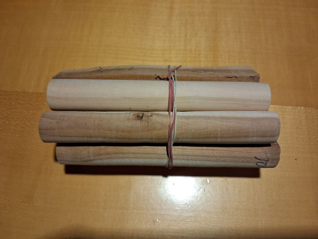 Nr4. Akazie, eines der Härtesten Hölzer, mit oft einem Spindigen Kern der sehr hell ausfallen kann, dadurch auch nicht uninteressant, schwer zu bearbeiten und zu schleifen, Lackieren und Stabl. Sehr gut.
