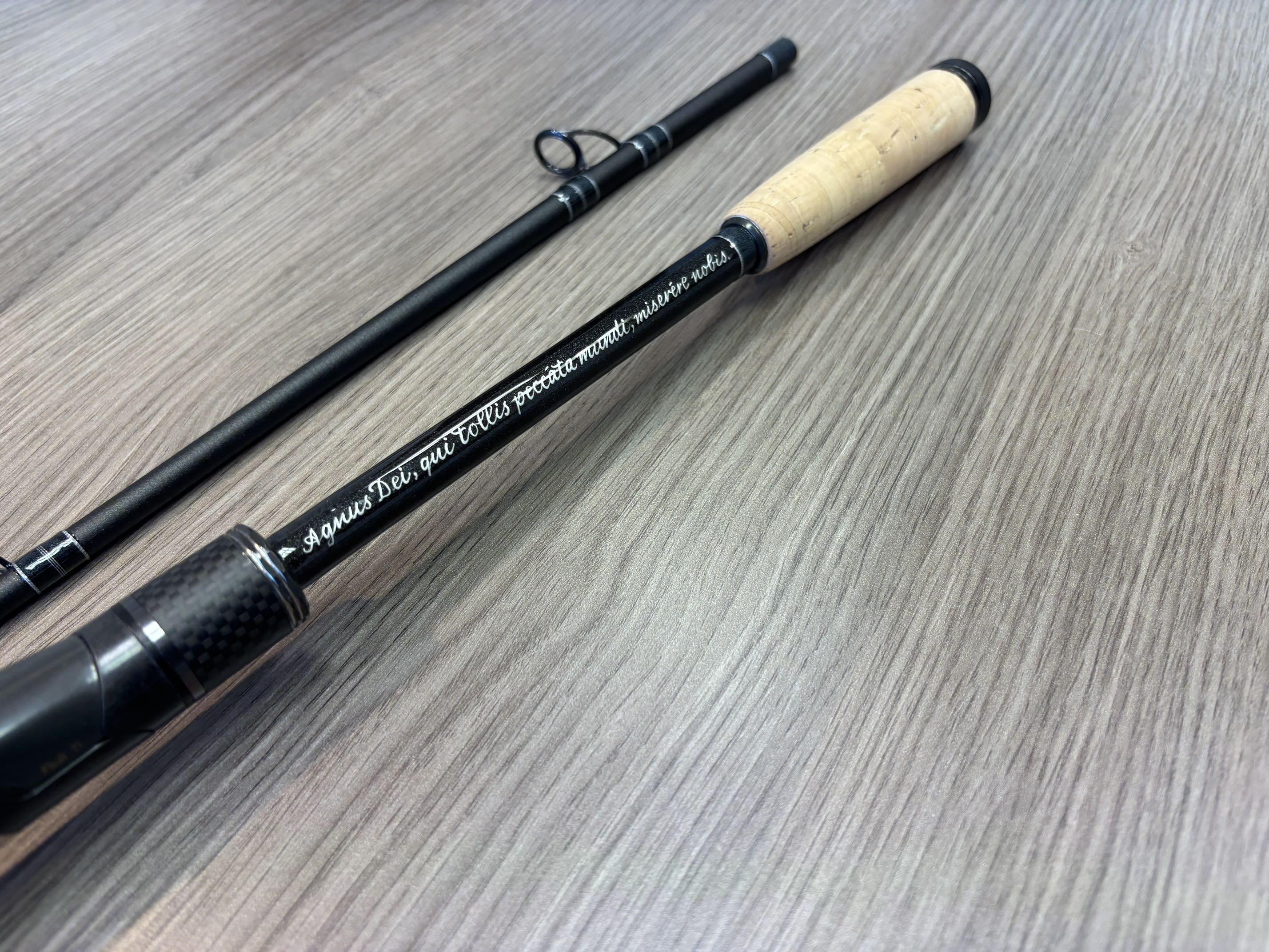 "Lamm Gottes, du nimmst hinweg die Sünde der Welt, erbarme dich unser", das kommt gut aber ich hätte es -wegen dem Lamm- eher auf ein Kleinkalibergewehr als auf eine Angelrute geschrieben... Lachen-5