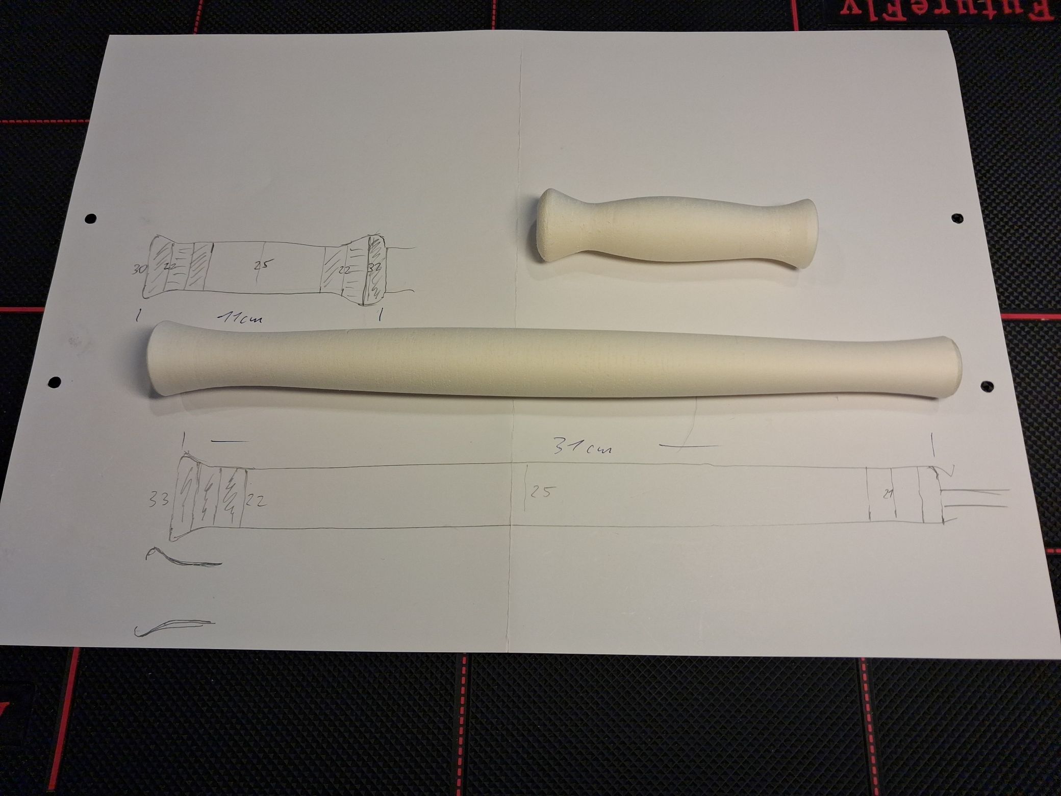 So nun ist Heute der letzte Griff Rohling fertig geworden, da es sich hier um mein neues Projekt handelt musste eine etwas andere Form her, habe deshalb etwas Colani Gespielt. Die Herausforderung war hierbei etwas zu schaffen das Eckig ist, aber trotzdem Rund, der Grat zwischen Angenehm und Eckig ist echt sehr gering, habe ihn dreimal gemacht bis er die gewünschte Form hatte.