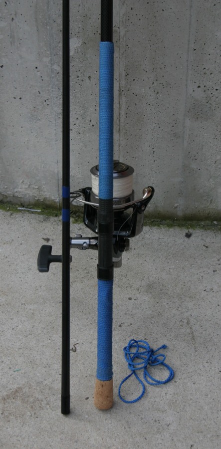 da ich es diesen Sommer eilig hatte und ich keinen Kork oder ähnliches zu Hause hatte, hab ich einfach den Griff meiner Karpfenrute mit einer Schnur umwickelt, ähnlich wie es die Messermacher manchmal bei ihren Messern machen: