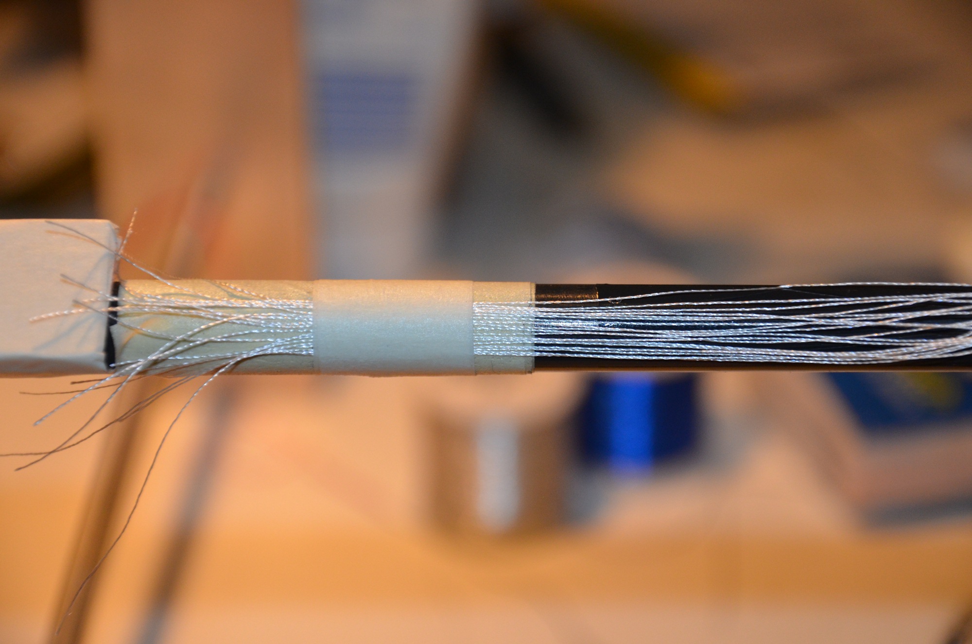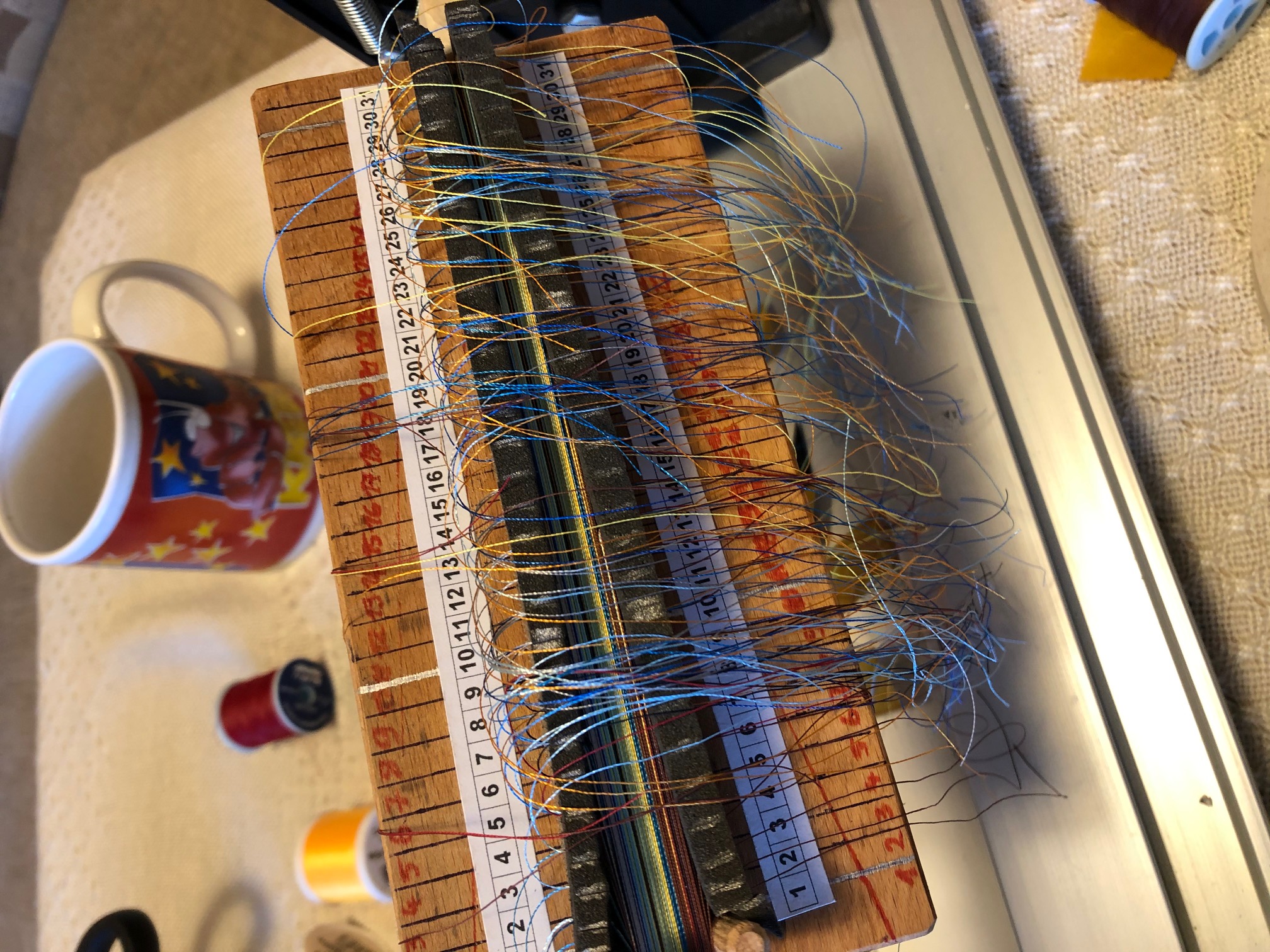 Ich arbeite oft mit 60 Fäden, kann aber auch schnell das doppelte und mehr sein wenn man farbig werben möchte. Da sind dann 2,3,.......Fäden in einem Fadenschlitz gespannt.