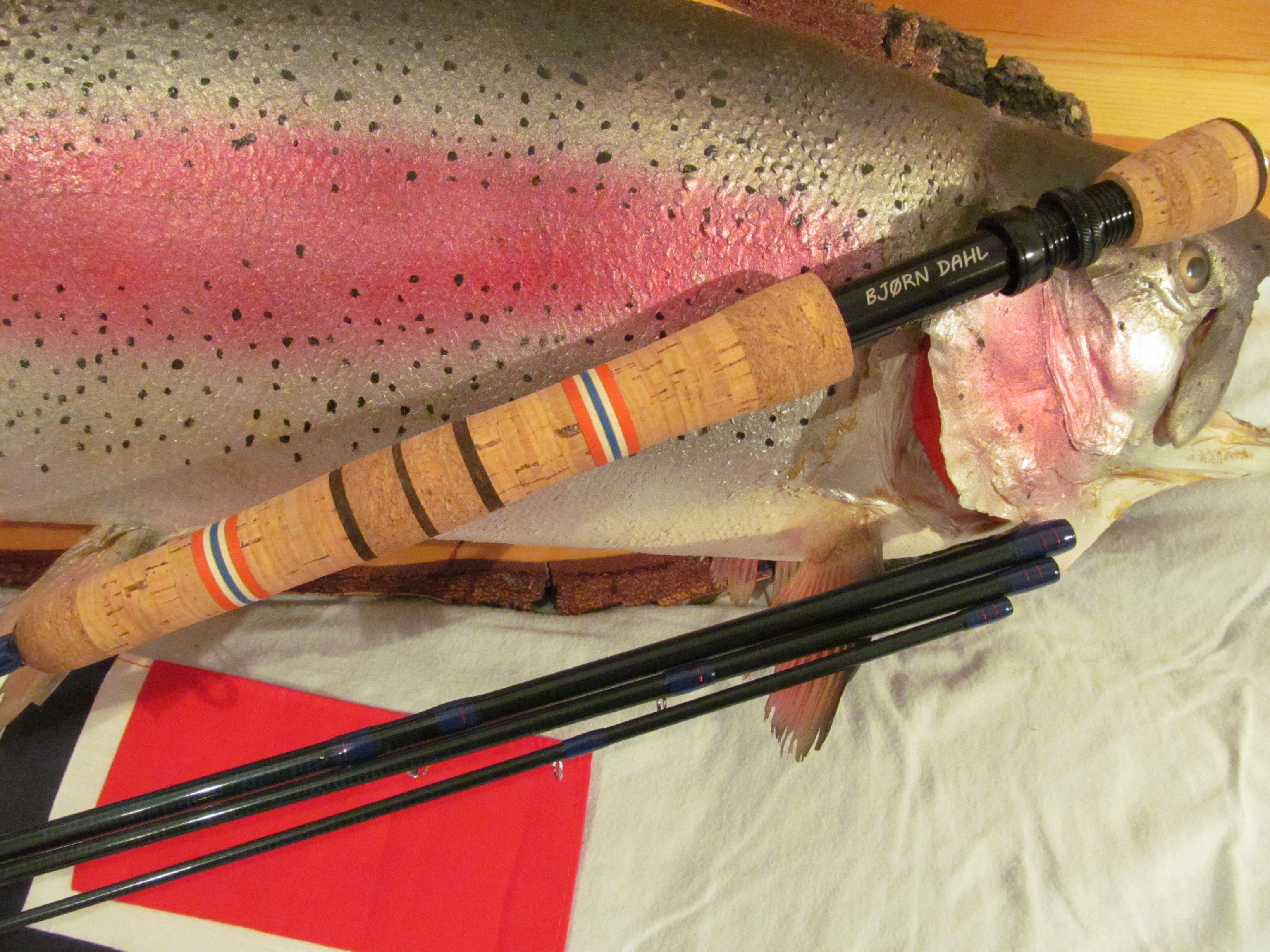 Besonders die Kork-Moosgummi-Kombo. Gute Idee ein bisschen Farbe in den Korkgriff zu bringen. Passt natürlich sehr gut zum Norwegen Thema. Mag sein, das es etwas zu bunt ist für eine Fliegenpeitsche aber die Skandinavier haben ja auch ein ganz anderes Verhältnis zu ihren Nationalfarben.